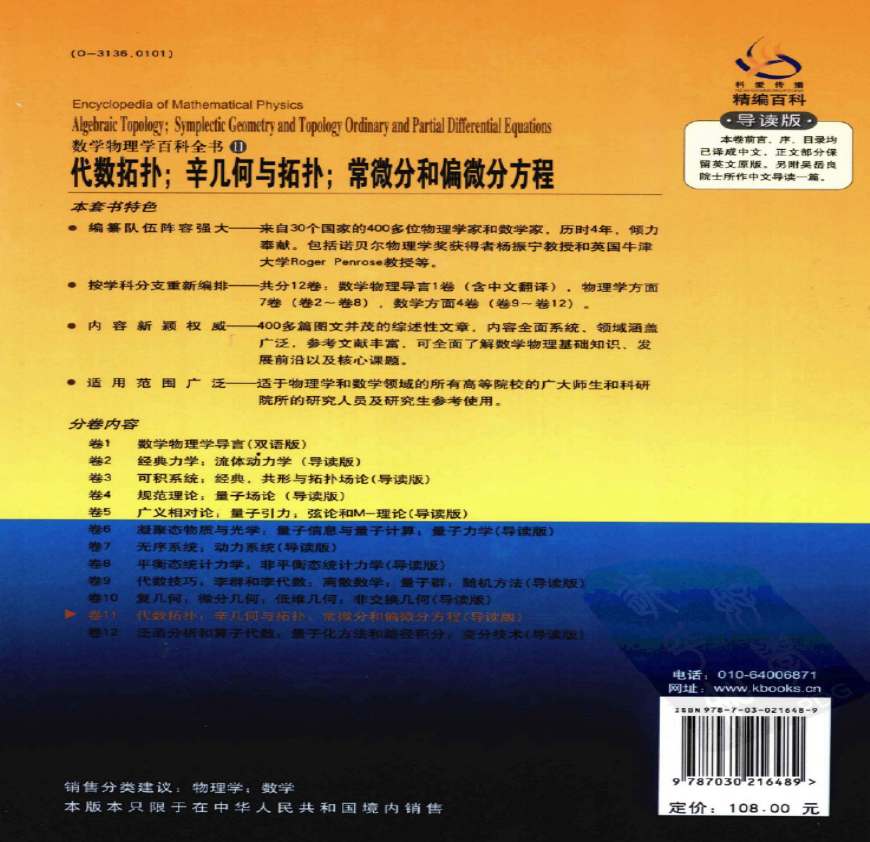 数学物理学百科全书(卷11):代数拓扑;辛几何与拓扑;常微分和偏微分方程(英文导读版)资料下载,喜欢的朋友可以下载收藏!
