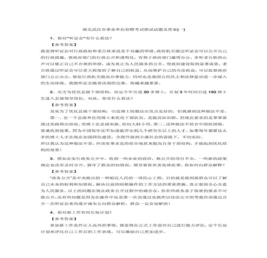 事业单位面试真题:武汉事业单位面试真题集.pdf 免费下载
