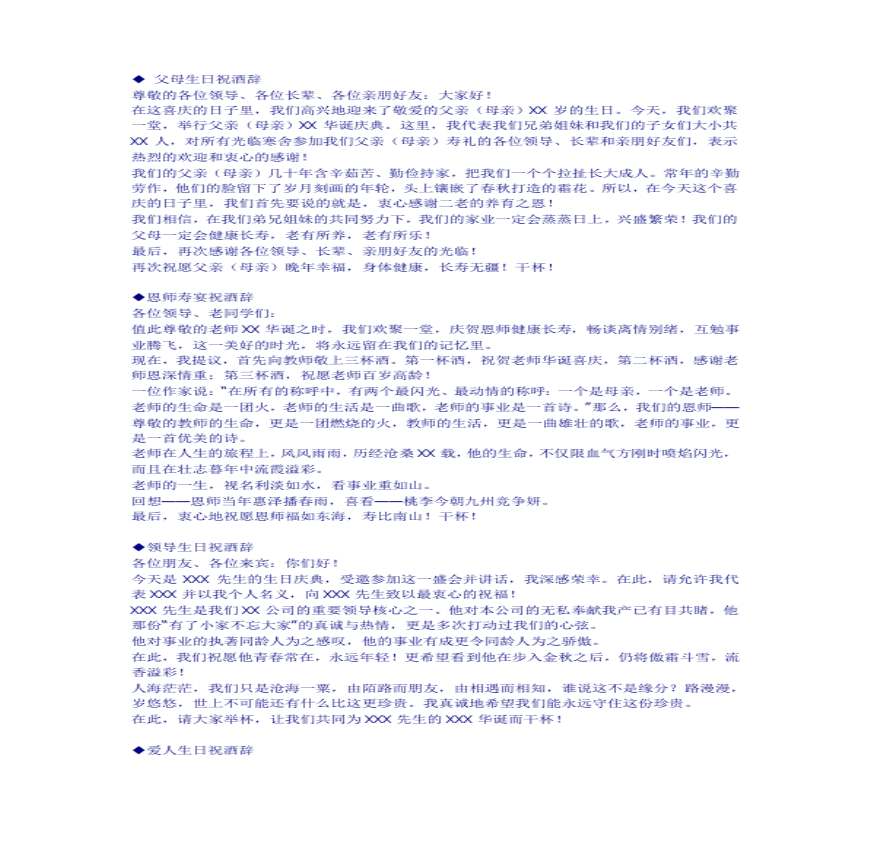 爱人生日辞 各位朋友:晚上好 感谢大家来到今晚我太太的生日会大家提议让我讲几句,春实也没什么事讲的你们从我一脸的灿烂足可以看出我内共页上传时间::