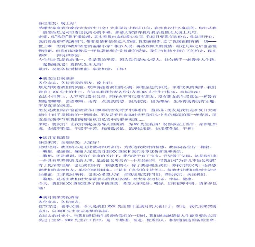 绝对各种场合祝酒词大家都要经历各种场合的宴席,是必须要准备好的。