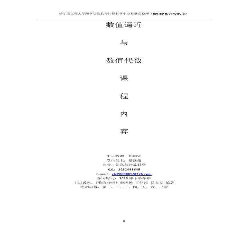 数值逼近与数值代数课程大纲教学内容.pdf 免费下载