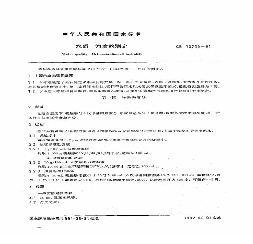 水质 浊度的测定 GB13200——91.pdf 免费下载