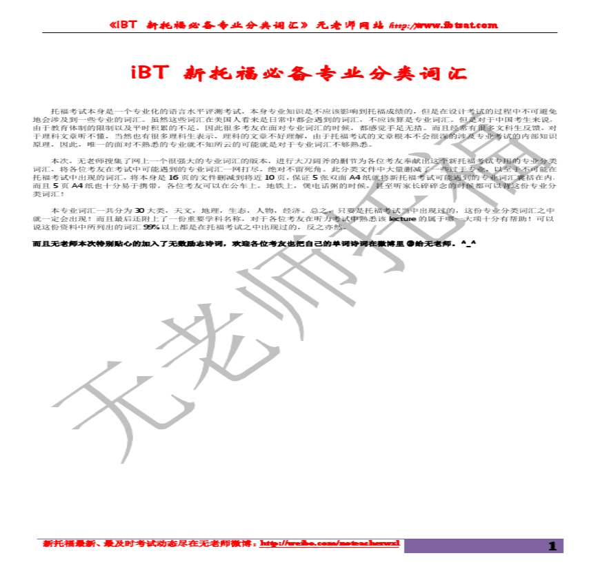 托福必备专业分类词汇资料下载,喜欢的朋友可以下载收藏!
