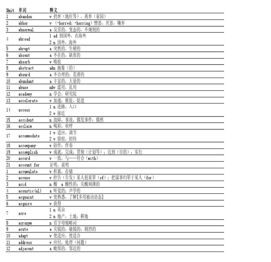 《当代研究生英语》读写教程(上)译文及课后词汇