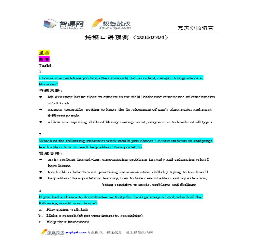 托福口语预测讲义版 0704资料下载,喜欢的朋友可以下载收藏!