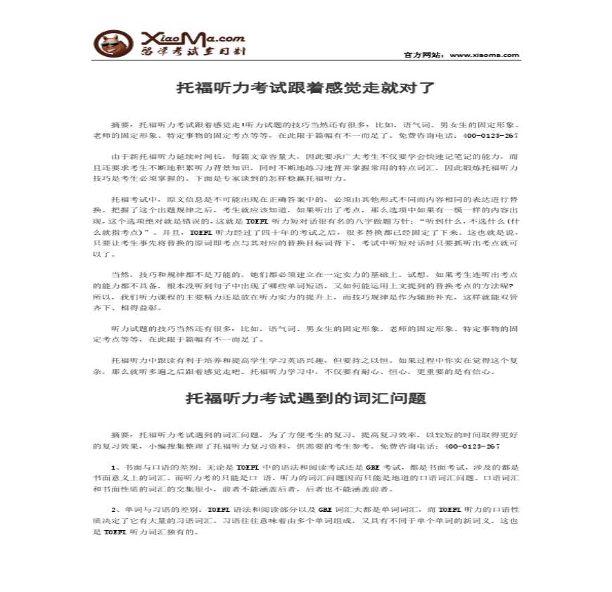 托福听力考试跟着感觉走就对了资料下载,喜欢的朋友可以下载收藏!