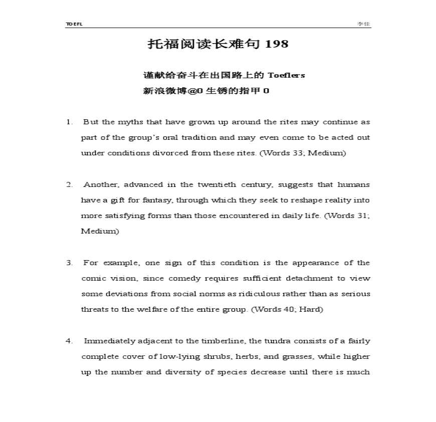 之前楼主就在论坛里传过托福阅读长难句的资料,而且看了一下,不止一片资料,看来长难句真的是很重要