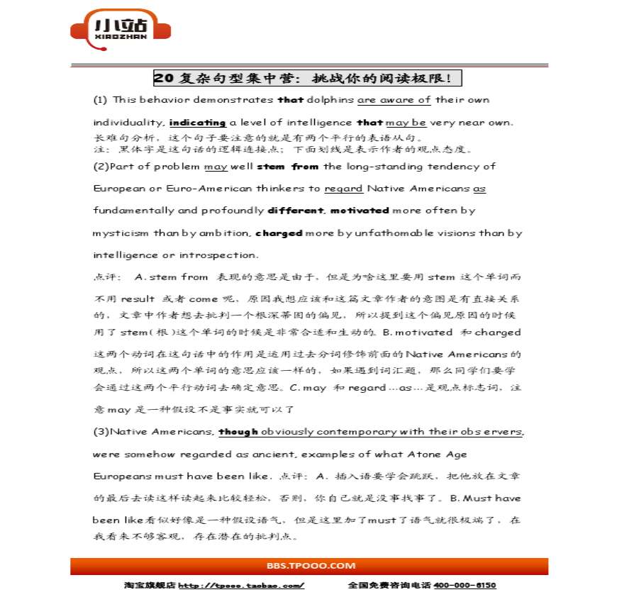 智课 备考资料—高分法宝(必过 分) PDF完整版摘要:—高分法宝(必过 分)是 PDF扫描版,都是老师们辛苦搜集来的资料,希 学习资料页 点 :句子的复杂性 大难点:词汇、理解力、和句子 这部分是讲句子 建立在词汇之上,熟悉 句子之后有利于你的速度。