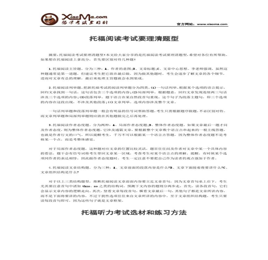 > 托福阅读考试要理清题型