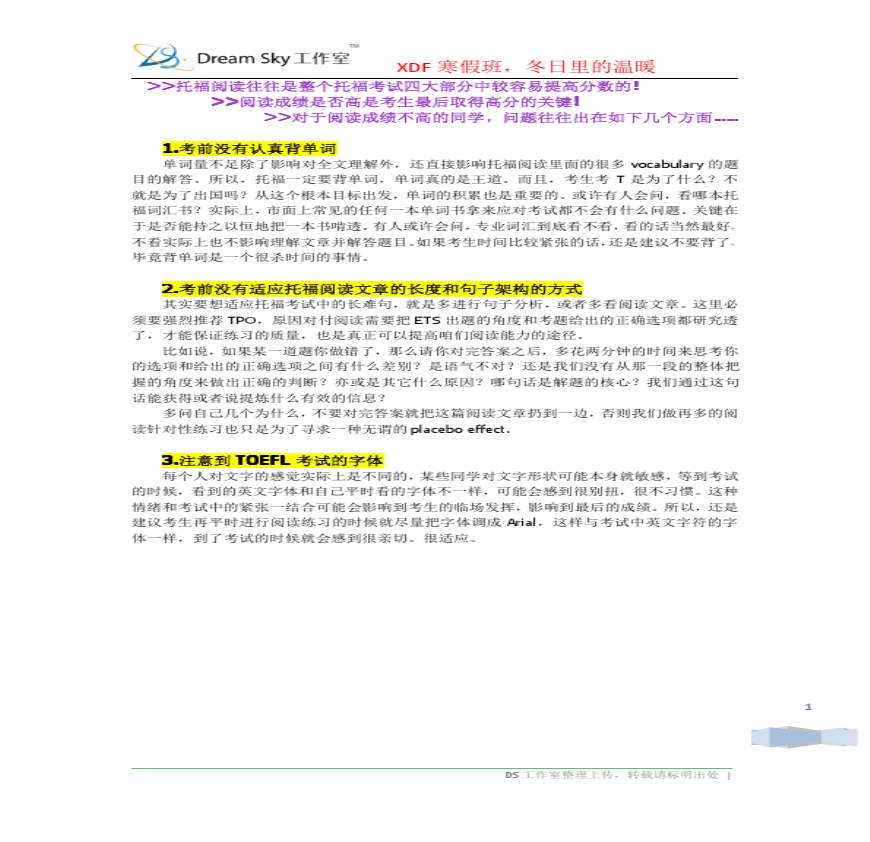 托福阅读往往是整个托福考试四大部分中较容易提高分数的!.pdf 免费下载