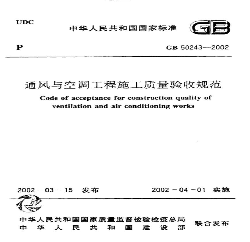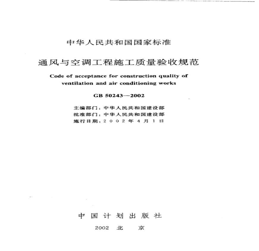 通风与空调工程施工质量验收规范 GB50243-2002资料下载,喜欢的朋友可以下载收藏!