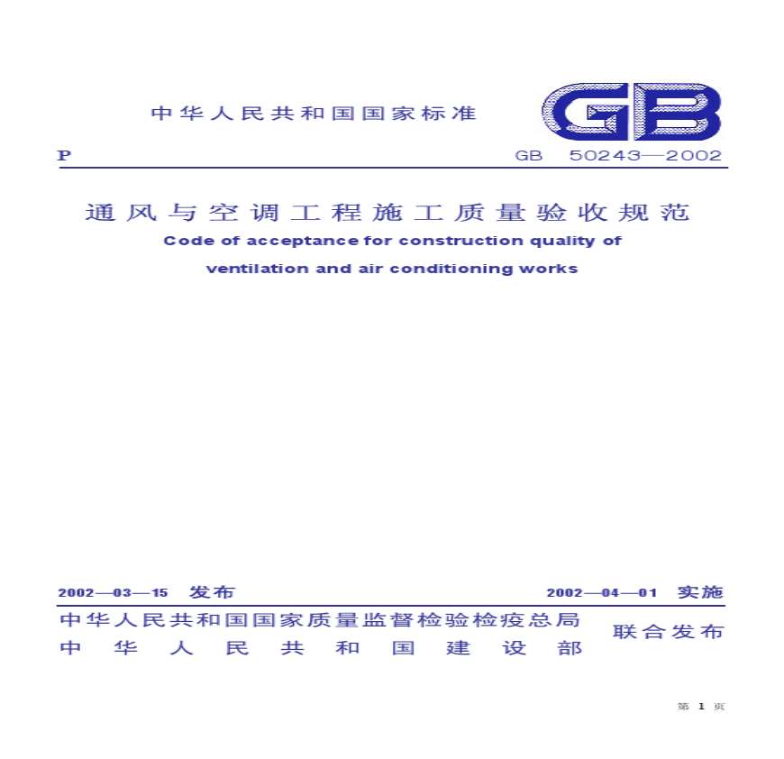 《通风与空调工程施工质量验收规范》GB50243-2002资料下载,喜欢的朋友可以下载收藏!