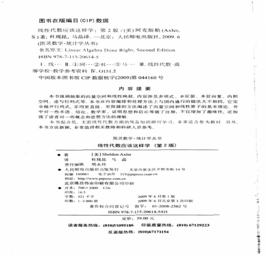 图灵数学·统计学丛书34-线性代数应该这样学(第2版)-[美]S·阿克斯勒-人民邮电-2009资料下载,喜欢的朋友可以下载收藏!