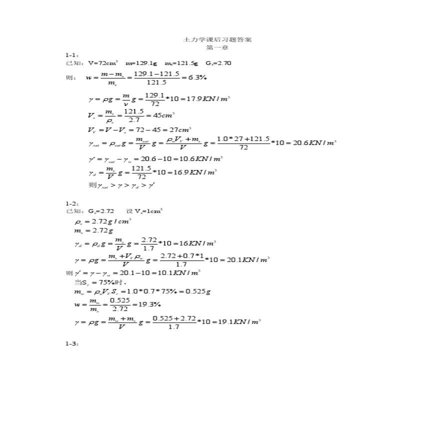 土力学课后习题答案(qh)资料下载,喜欢的朋友可以下载收藏!