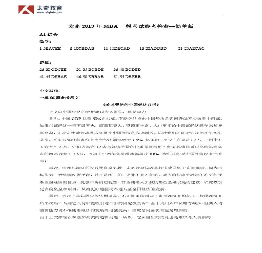 太奇2013年MBA一模考试参考答案---简单版.pdf 免费下载