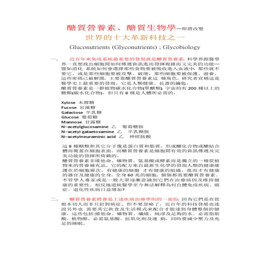 > 醣質生物學─世界的十大革新科技之一-醣質營養素成功的故事