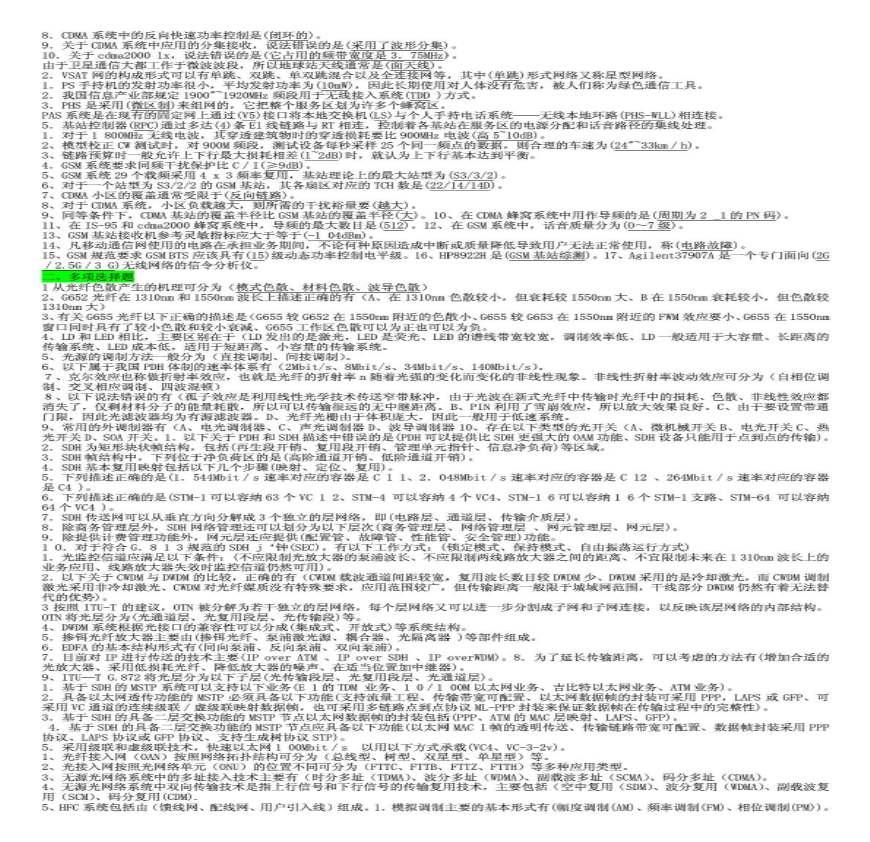 通信专业实务传输与接入(中级)-题目.pdf 免费下载