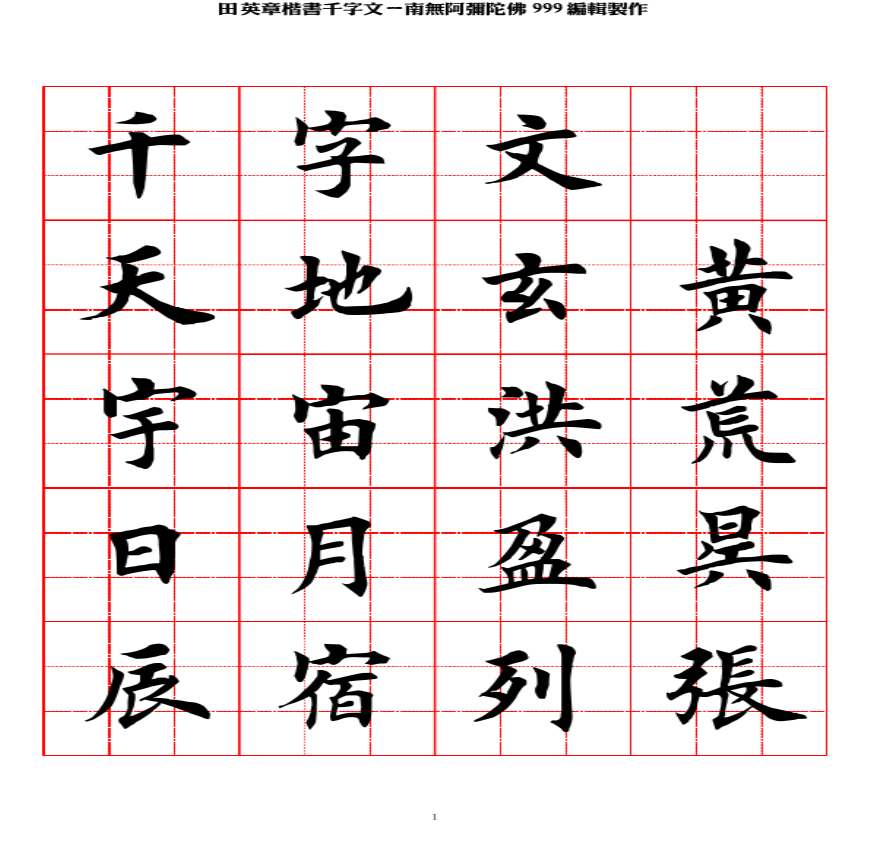 田英章楷书千字文-九宫格字帖.pdf 免费下载