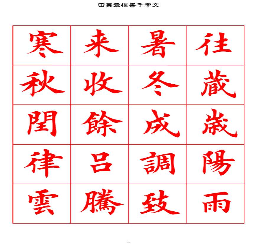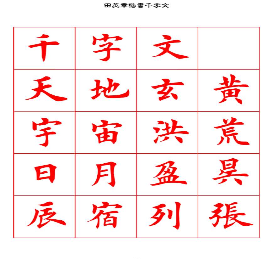 田英章楷书千字文描红字帖资料下载,喜欢的朋友可以下载收藏!