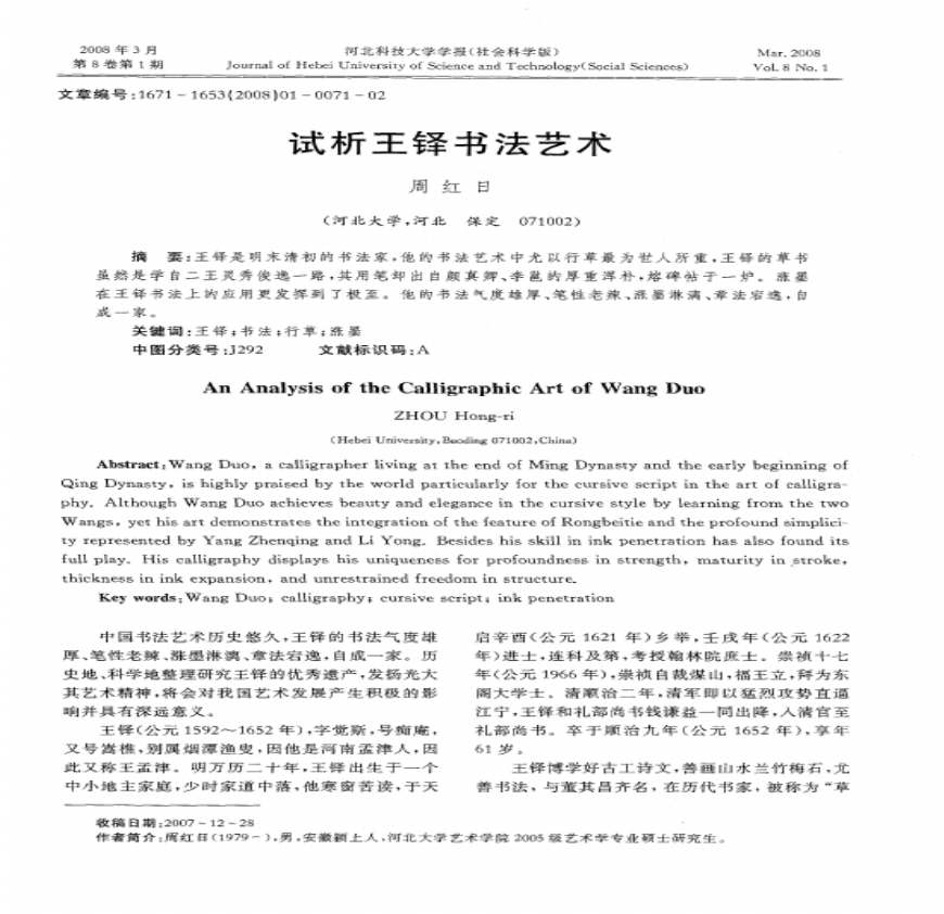 王铎书法艺术 和平2005年
