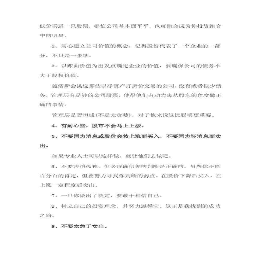> 沃尔特施洛斯之成功投资经验
