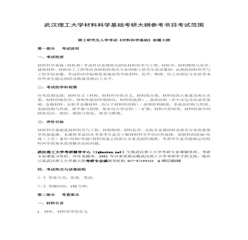 武汉XX材料科学基础考研大纲参考书目考试资料下载,喜欢的朋友可以下载收藏!