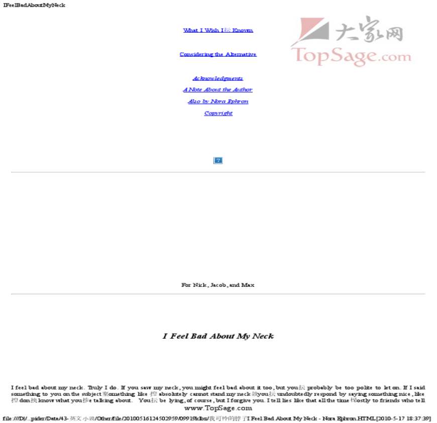 我可怜的脖子I Feel Bad About My Neck - Nora Ephron资料下载,喜欢的朋友可以下载收藏!