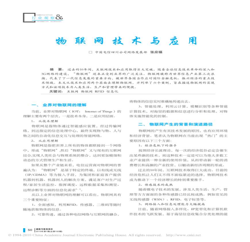 > 物联网技术与应用
