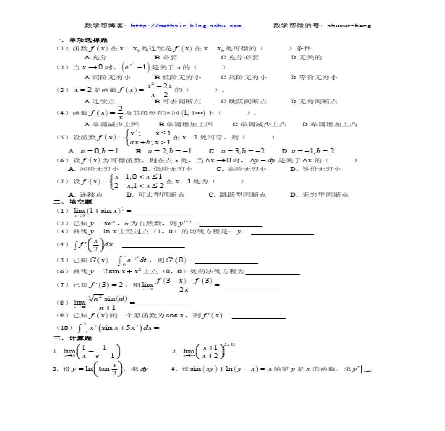 微积分练习题资料下载,喜欢的朋友可以下载收藏!