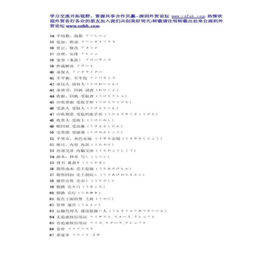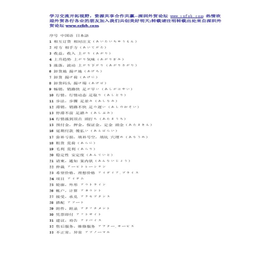 迎各行各业的朋友加入我们共创美好明天 ; 转载请注明转载出处来自深圳论坛 序号 中国语 相互订货 相対注文(あいたいちゅうもん) 对方