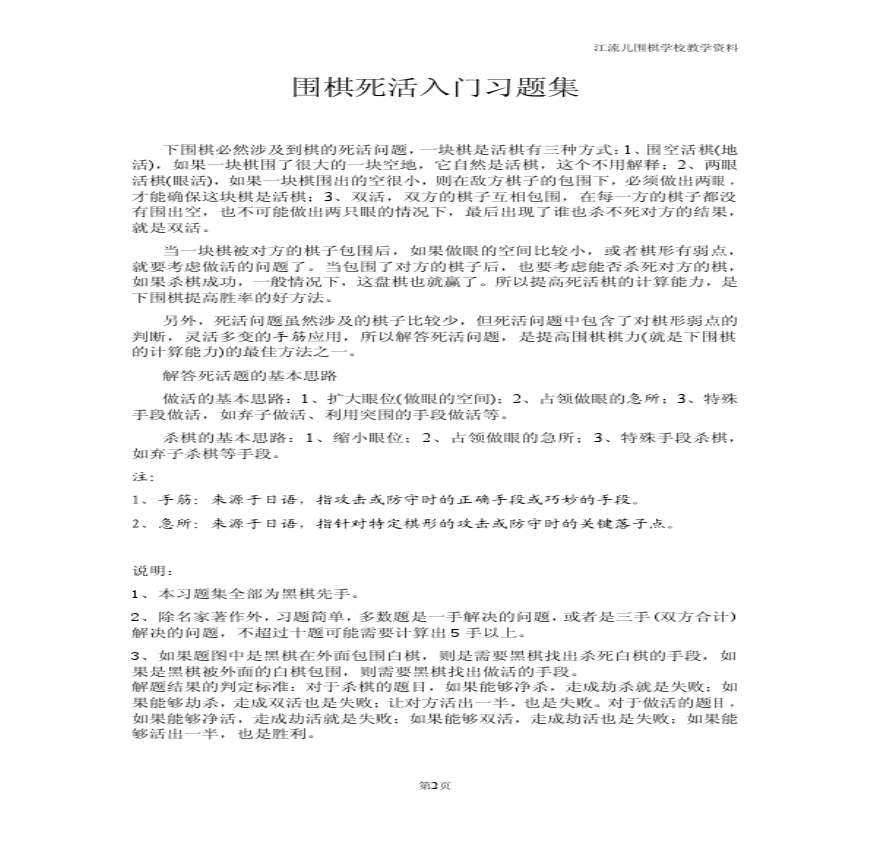 围棋死活入门习题集资料下载,喜欢的朋友可以下载收藏!