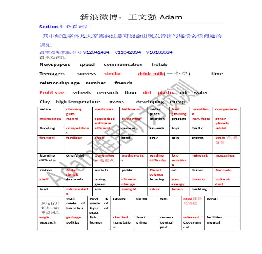 新浪微博: S 必看其中红色字体是大家需要注意可能会出现发音拼写连读弱读问题的最重点补充版本号VS VS VS最重点 学习资料页