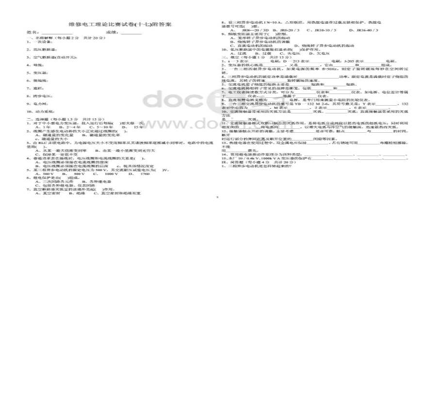 感谢您对本站的技能(有) 分 搜索 技能(有) 下载券 b 学习资料页 技能有技能一填空题导线并联时的电阻为O串联时的电阻为O则两条导线分别是O和