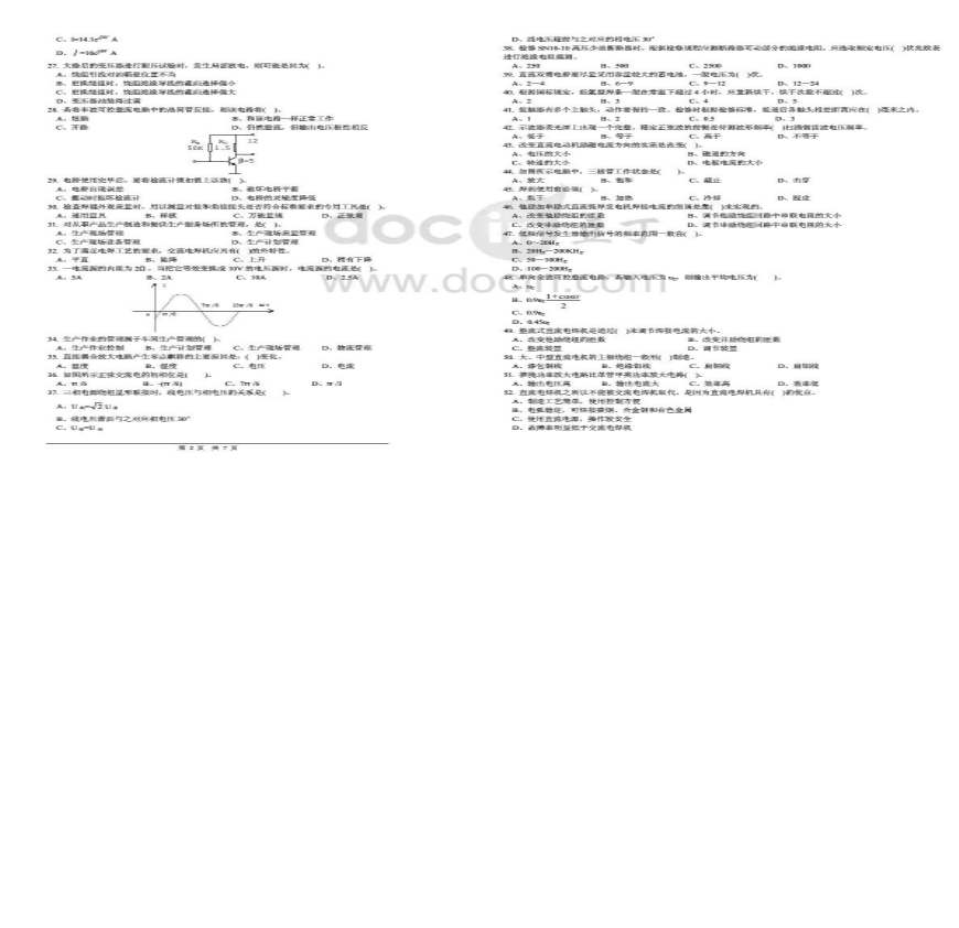 初级(A),一、填空题:共分,每空格分(请将正确的填写在横线的空白处),、电路产生过渡过程的条件是电路有,产生过渡过程的内因是由电路中含有初级(后面) 高级高级一、单项选择学习资料页 一、单项选择(第题~第题。