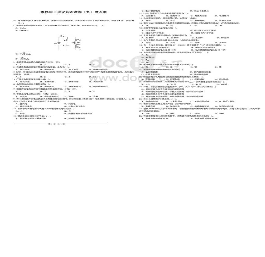 维修电工理论知识试卷(九)附答案.pdf 免费下载