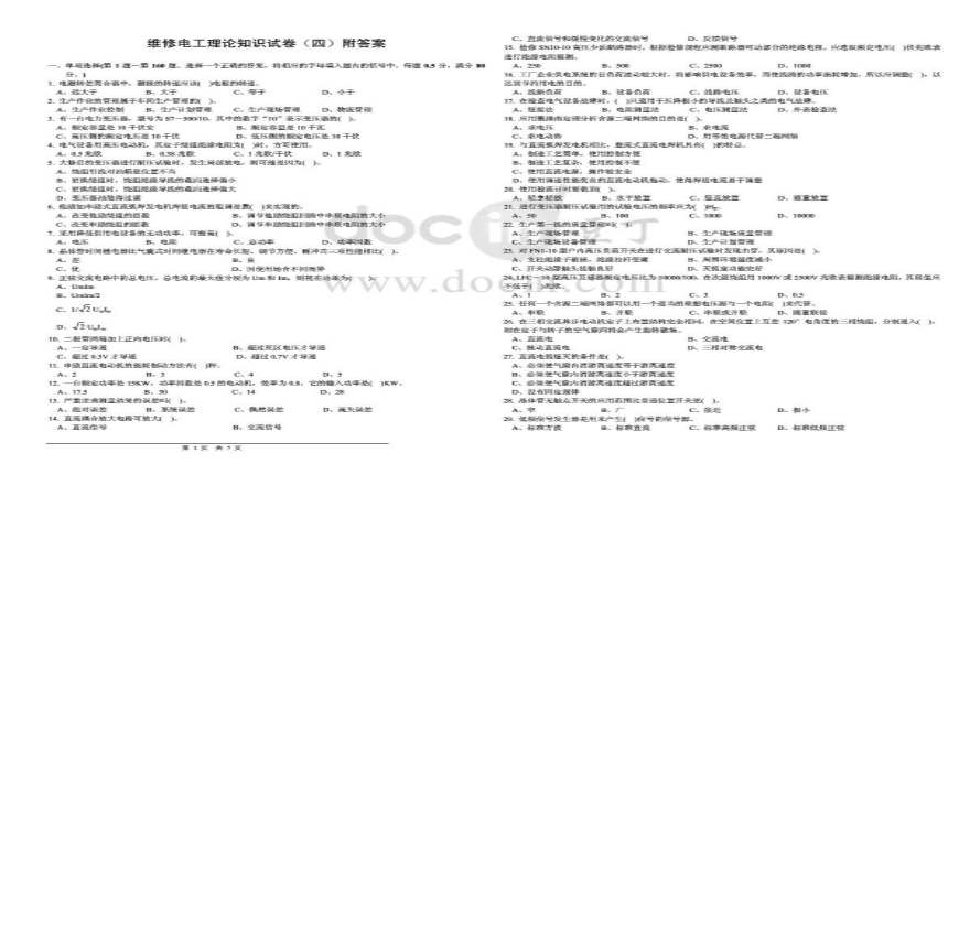 维修电工理论知识试卷(四)附答案.pdf 免费下载