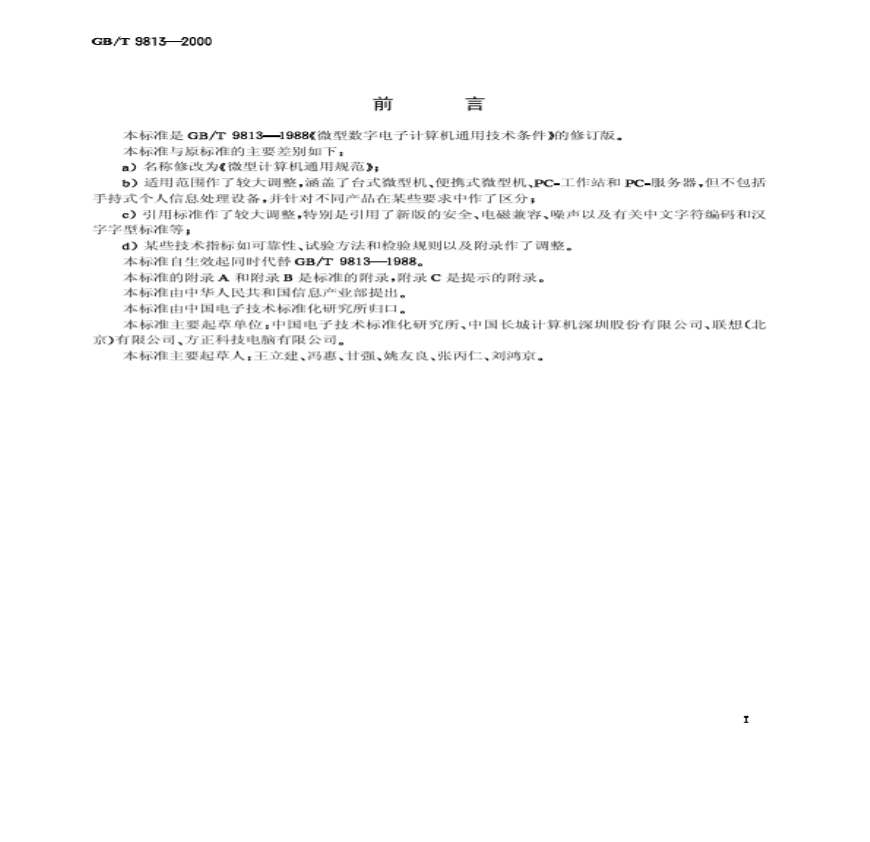 质量分共页中华人民共和国国家微 型 计 算 机 通 用 规 范发布 实施国家质量技术监督局 发 布前 言本是 数字电子技术条件 的修订版本与原的主要差别如下名称修改为 适用范围作了较大调整 涵盖了台式微查看全部