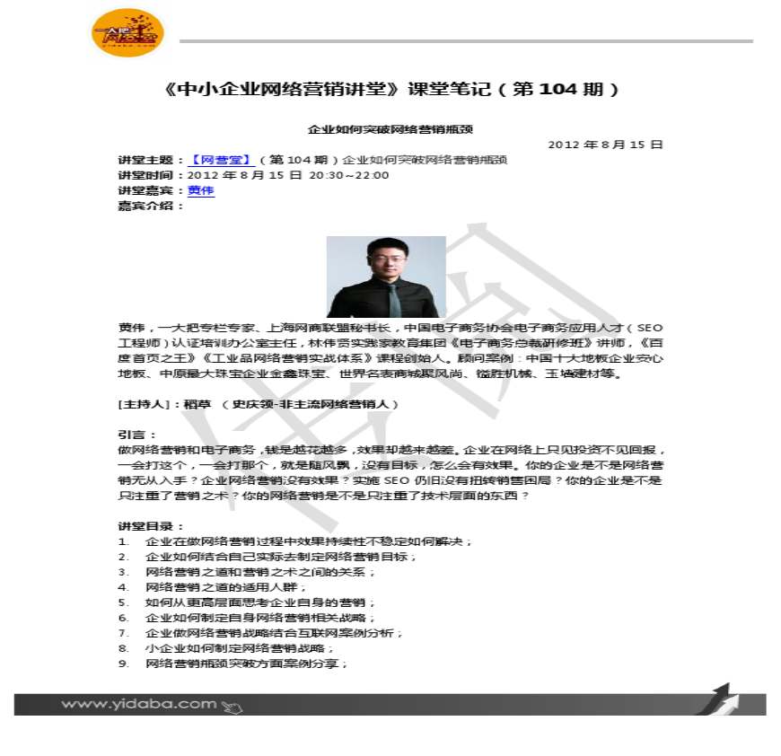 > 【网营堂访谈笔记】第104期:黄伟——企业如何突破网络营销瓶颈