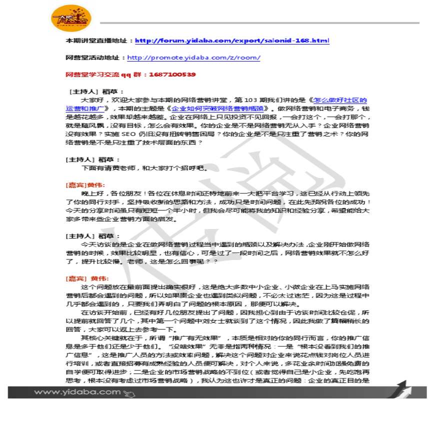 【网营堂访谈笔记】第104期:黄伟——企业如何突破网络营销瓶颈.pdf 免费下载