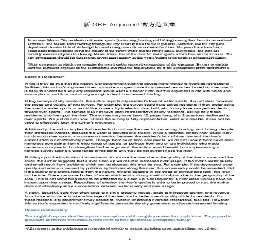 新GRE Argument官方范文集资料下载,喜欢的朋友可以下载收藏!