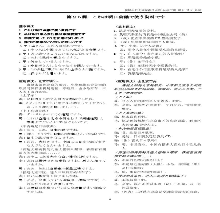 年月日新 学习资料页 新 CD CD CD : 学习资料页 基本 明日会議使資料 私明日乗飛行機中国航空 中国買CD 友達貸 操作簡単欲 A 甲:李,人。