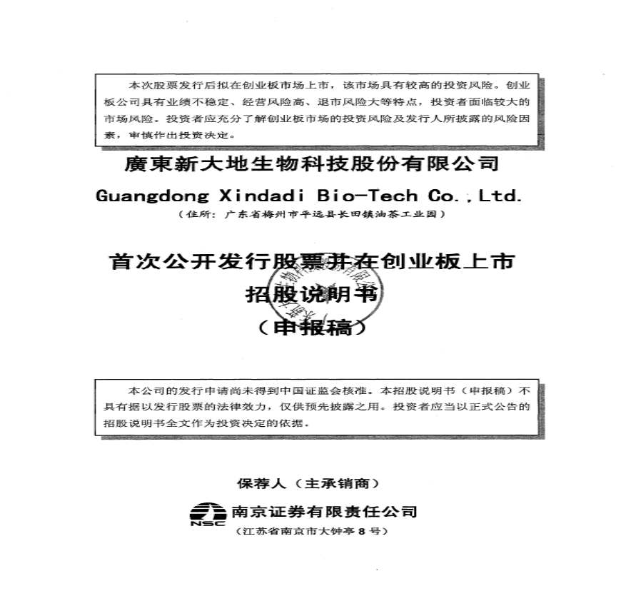 新大地IPO招股书资料下载,喜欢的朋友可以下载收藏!