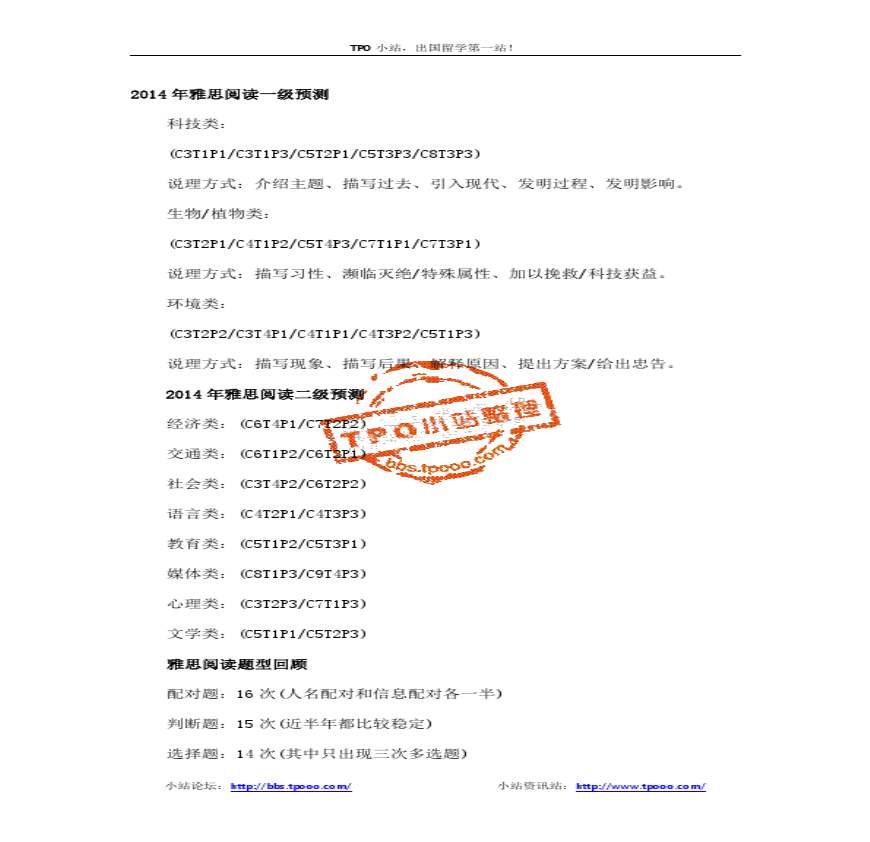 > 新东方2014年全年雅思阅读机经预测