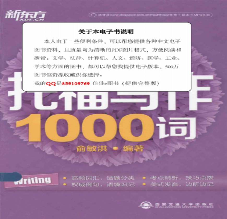 新东方 托福写作1000词_俞敏洪著_西安交通_2014.03_290页资料下载,喜欢的朋友可以下载收藏!