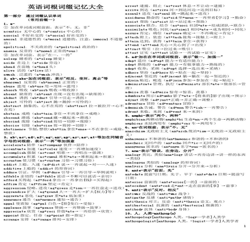 英语词汇速记大全 词根 词缀 记忆法