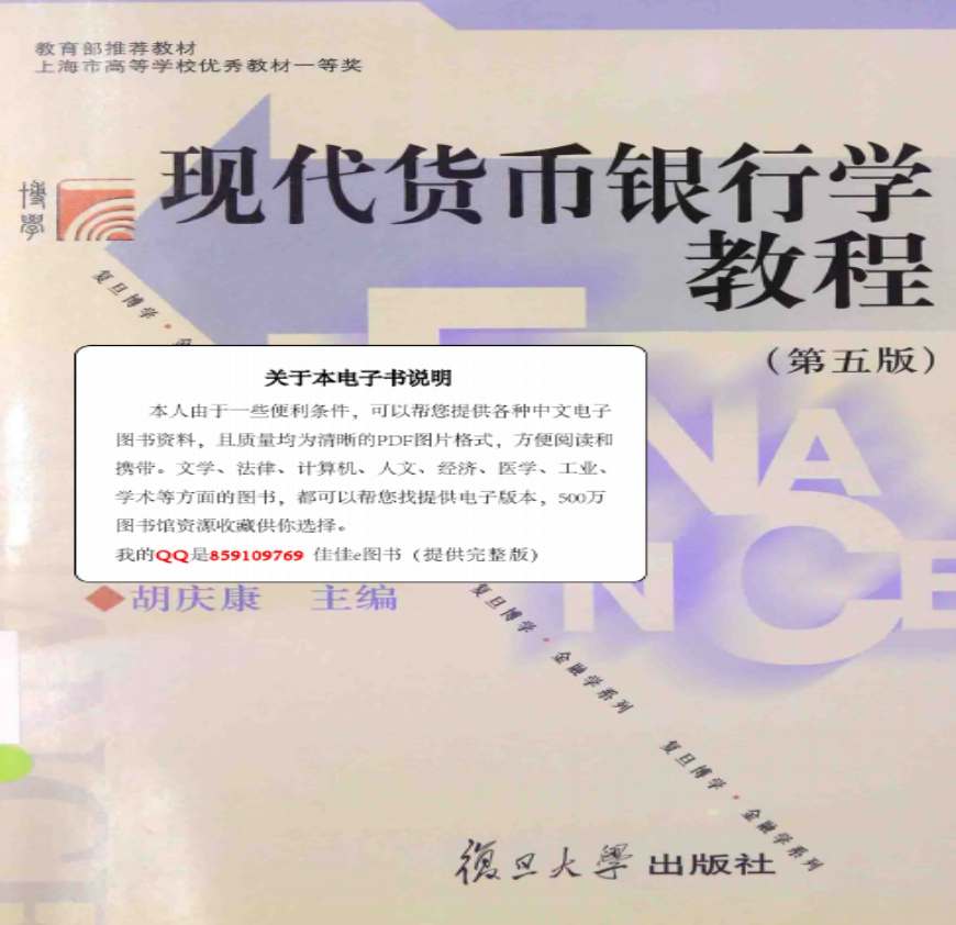 现代货币银行学教程 第5版_胡庆康主编_复旦 _2014.08_446页资料下载,喜欢的朋友可以下载收藏!