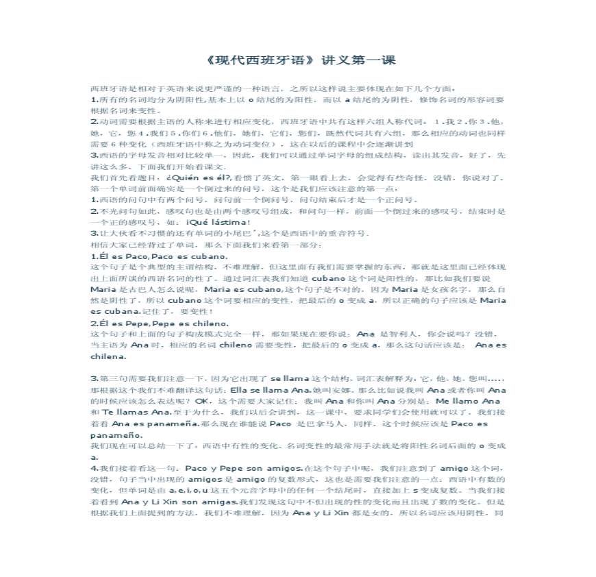 > 现代西班牙语第一册讲义(1-12课)