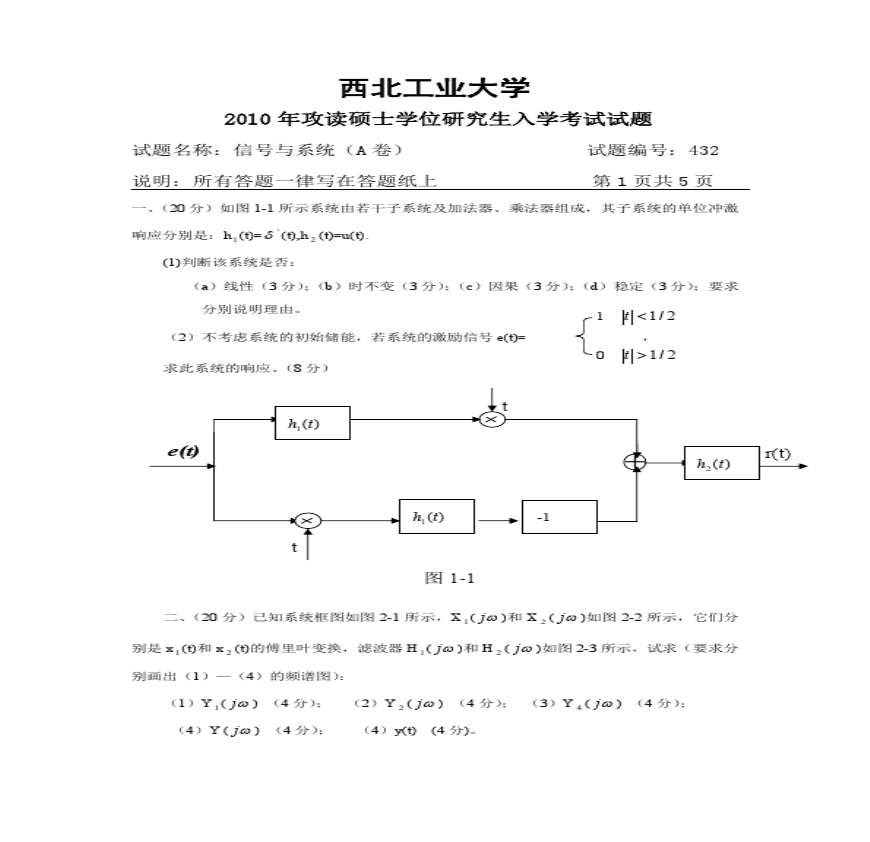 西工大10年信号与系统考研真题.pdf 免费下载