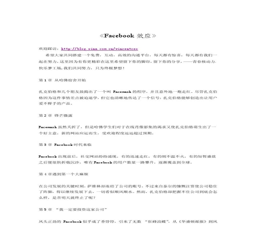 香港推荐的50本经典书籍24:Facebook效应 中文完整版资料下载,喜欢的朋友可以下载收藏!