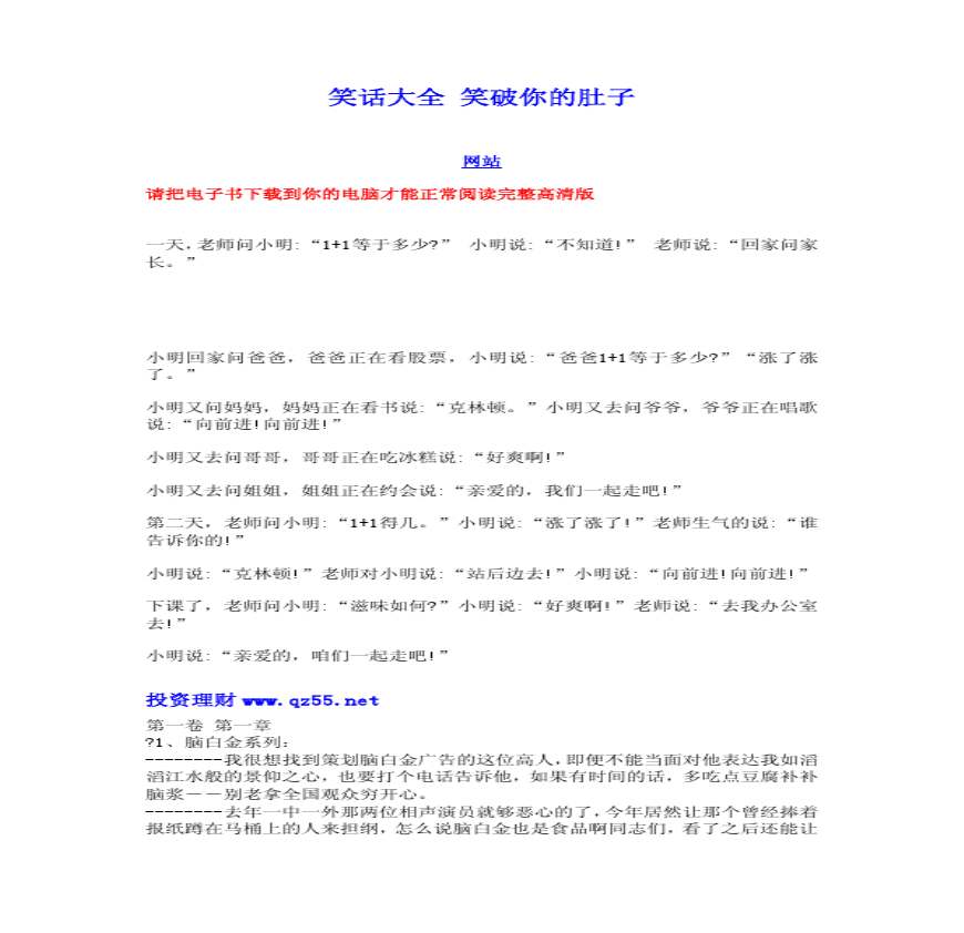 > 笑话大全 笑破你的肚子电子书